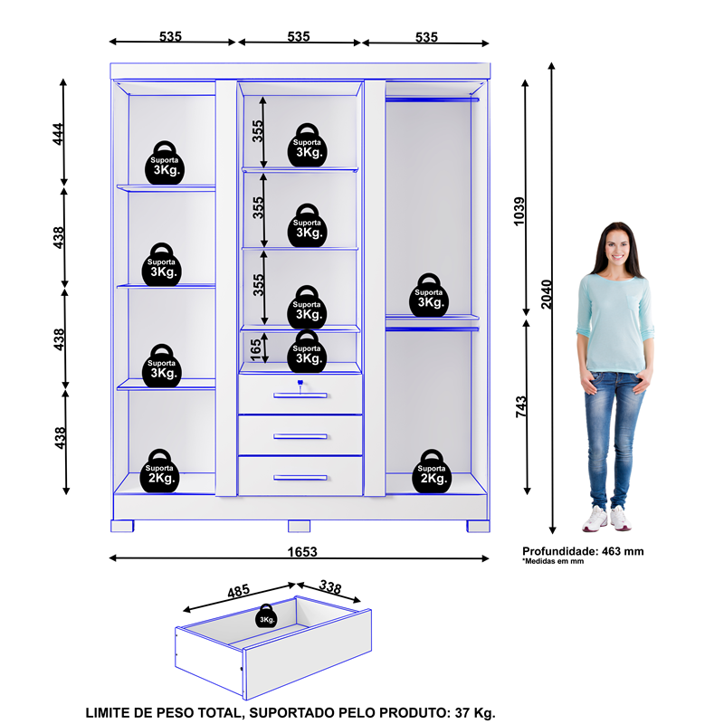 Este closet de gran formato ofrece una solución completa para quienes buscan máxima organización y amplitud. Con 2 puertas deslizantes,