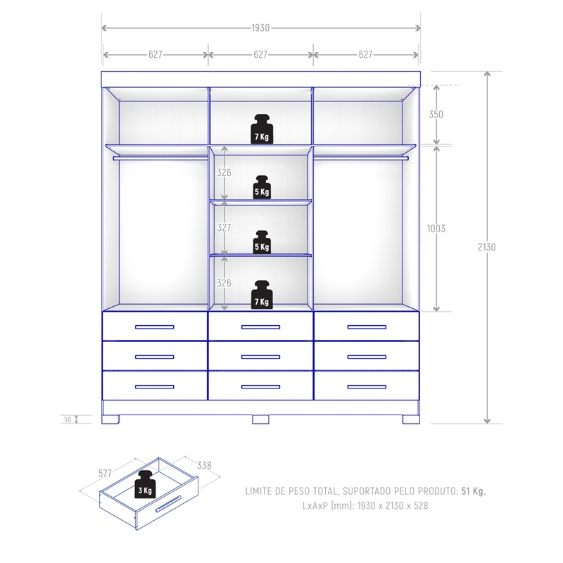 Este closet de gran formato ofrece una solución completa para quienes buscan máxima organización y amplitud. Con 2 puertas deslizantes,