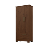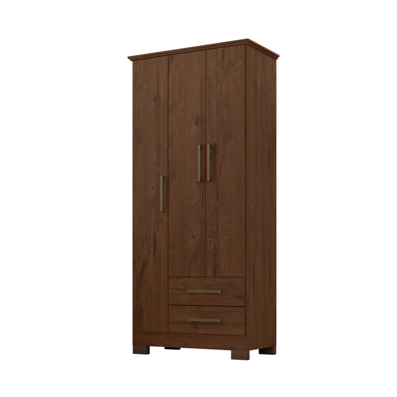 Closet de 3 puertas con terminación mate con textura, equipado con bisagras metálicas, 2 cajones con correderas metálicas, 1 barra para colgar y 3 repisas para una organización práctica y eficiente.