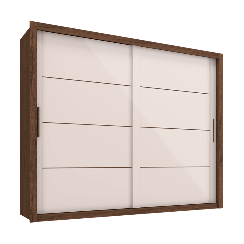 Closet con 3 barras de colgar, 2 puertas deslizantes con sistema corredizo metálico; 6 cajones con correderas telescópicas, los primeros con divisiones internas, 7 repisas interiores y maletero.