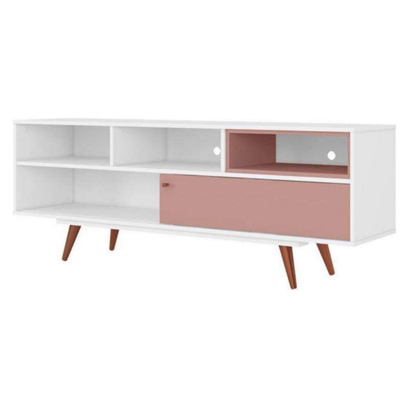 Rack para TV de hasta 50”, fabricado con estructura de 15 mm. Incluye 1 puerta abatible con bisagra metálica. Tirador